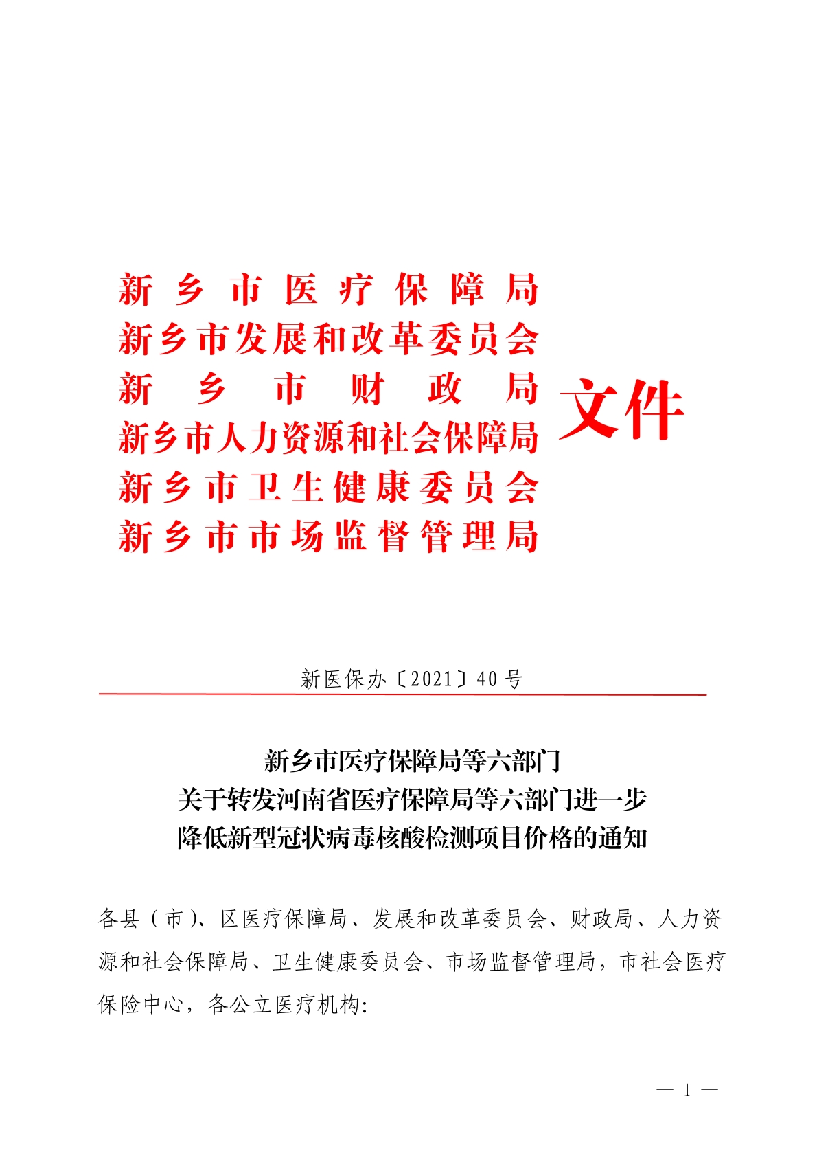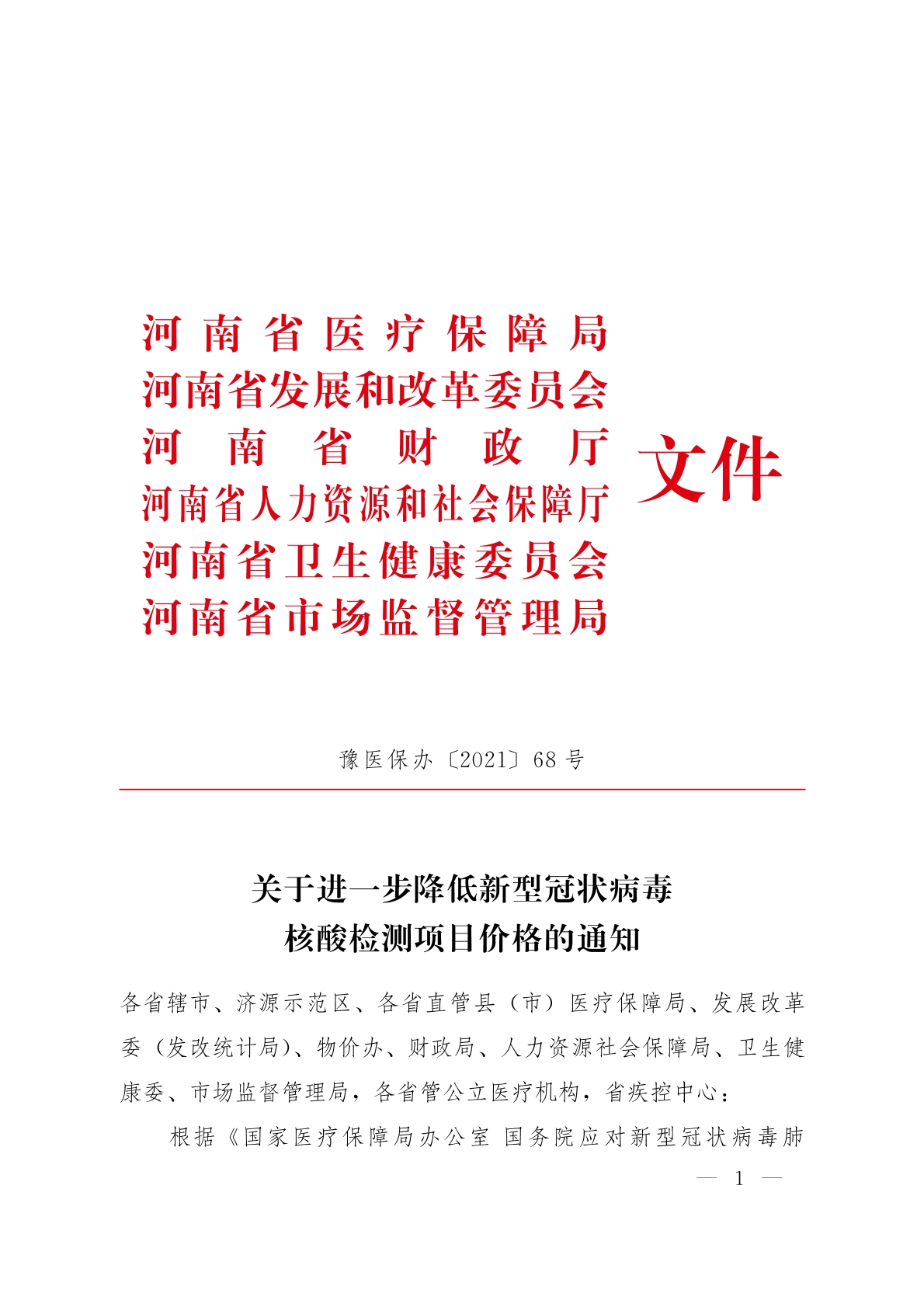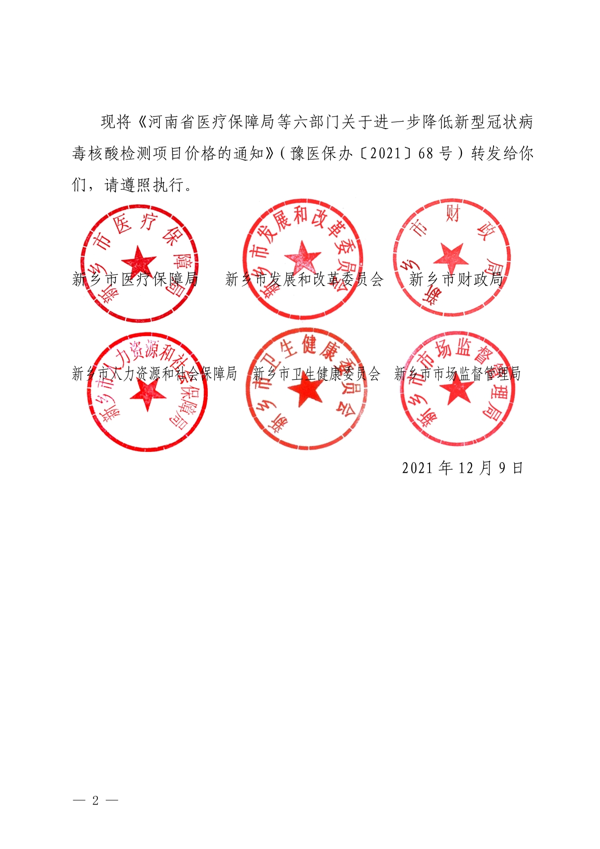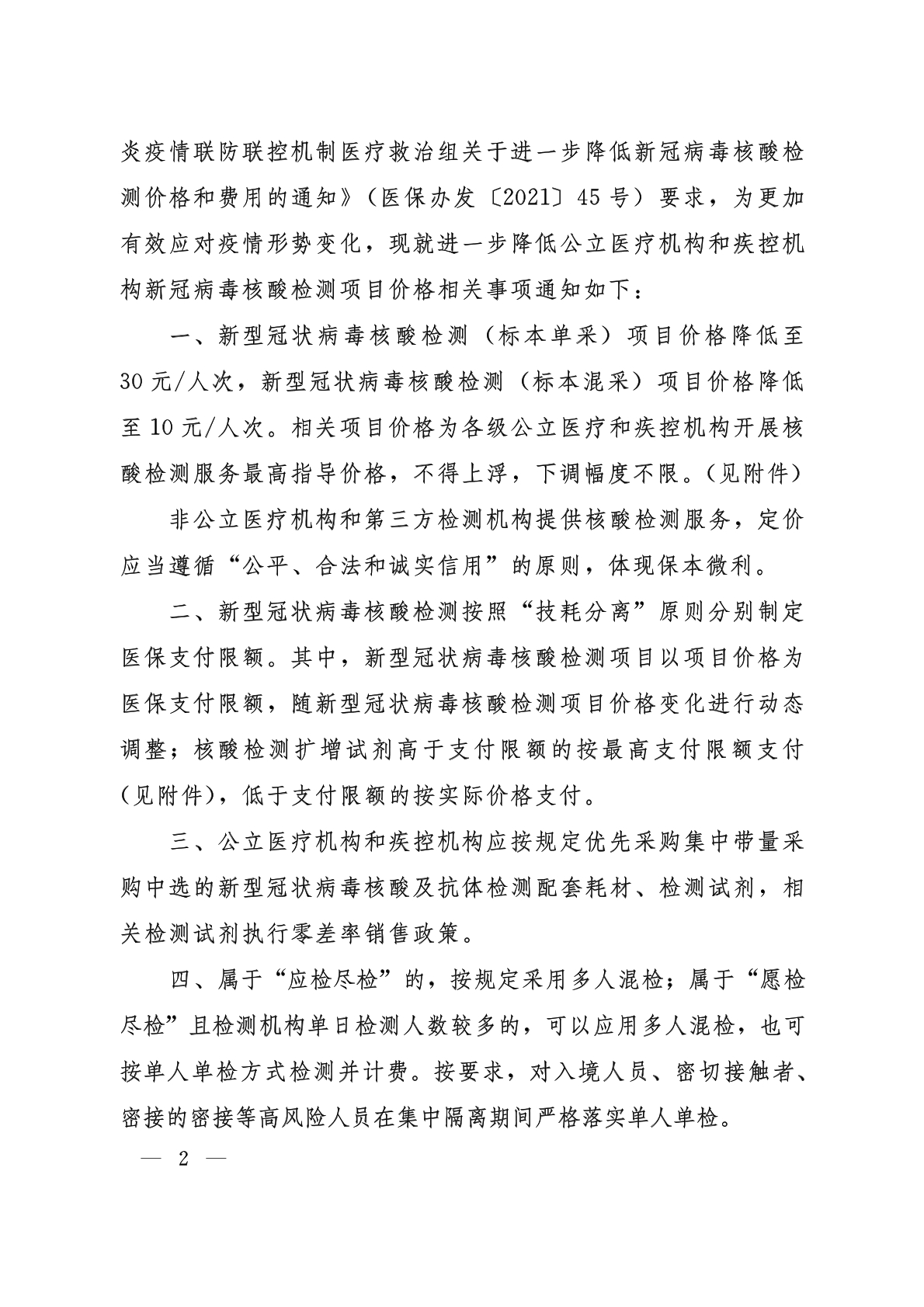 关于转发关于进一步降低新型冠状病毒核酸检测项目价格的通知