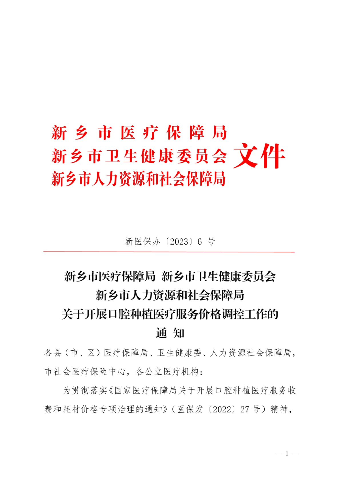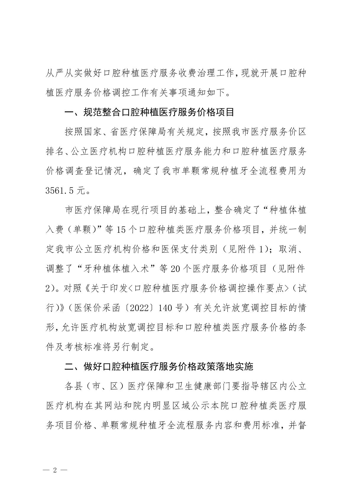关于开展口腔种植医疗服务价格调控工作的通知
