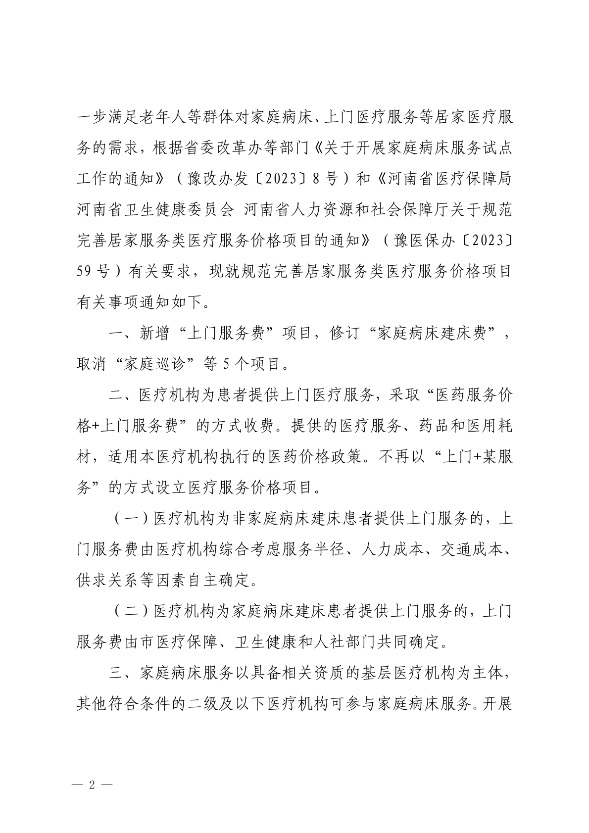 关于规范完善居家服务类医疗服务价格项目的通知