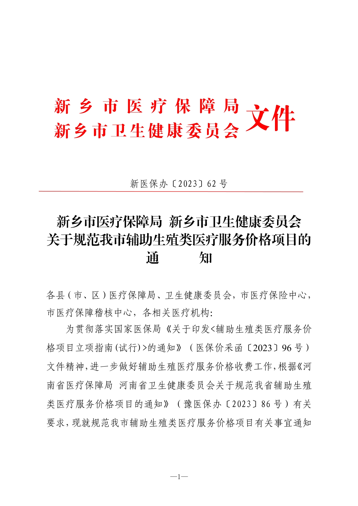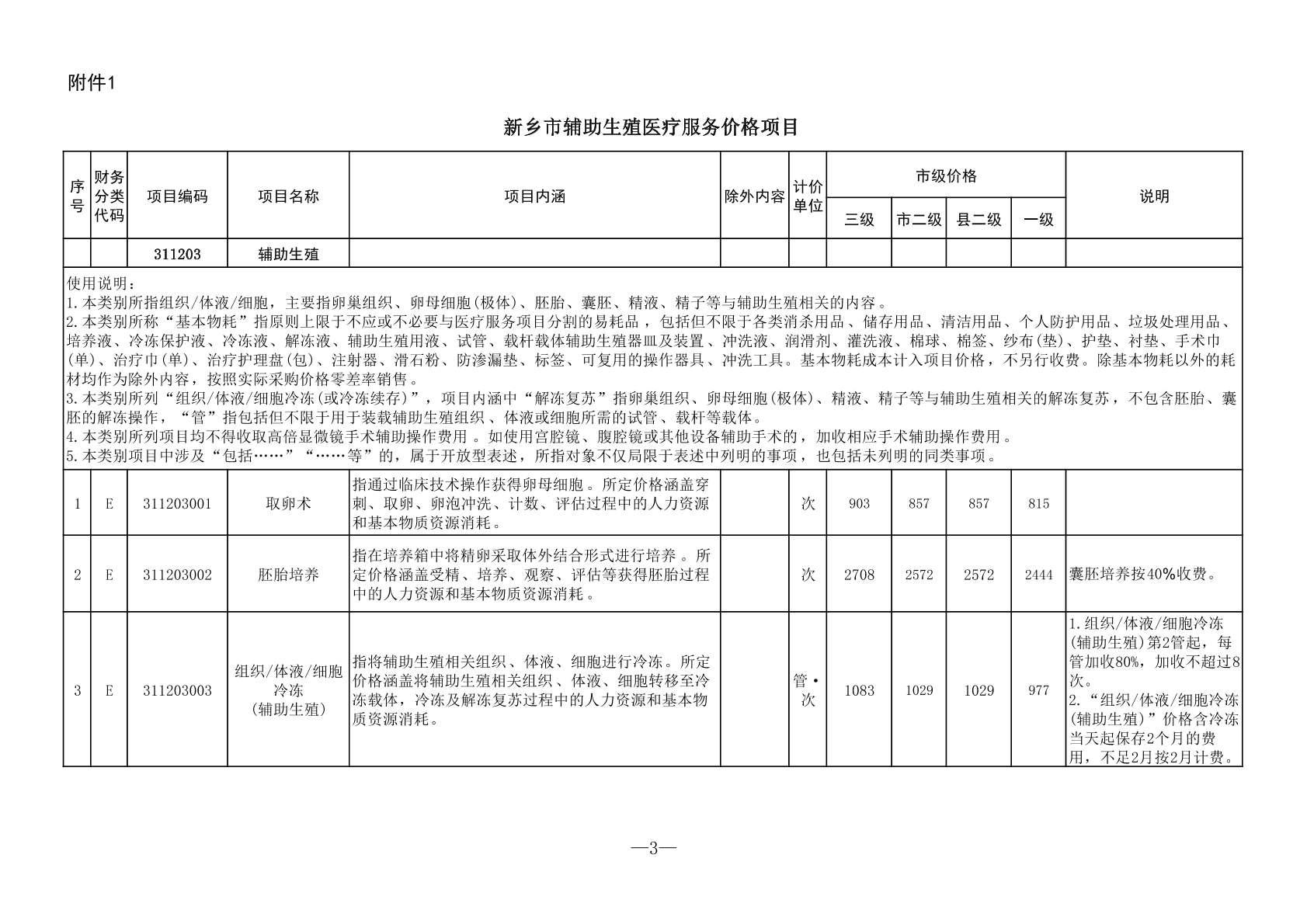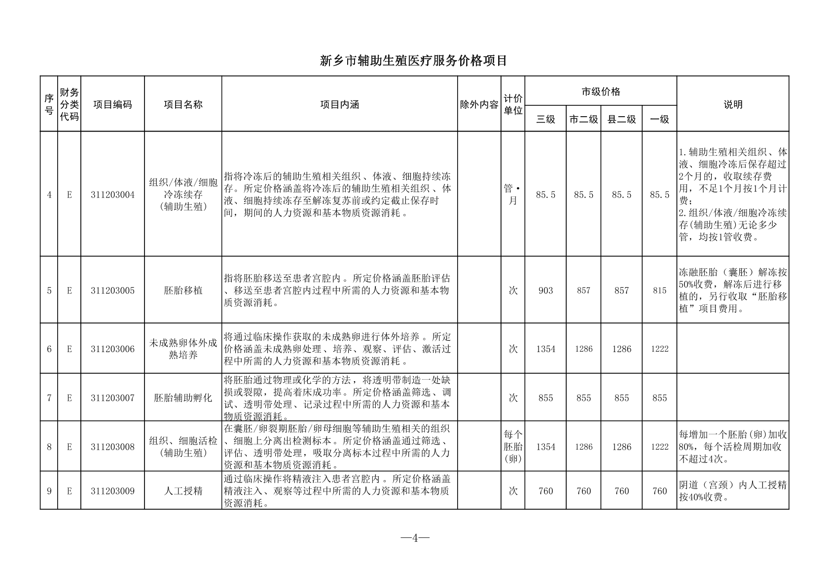 关于规范我市辅助生殖类医疗服务价格项目的通知