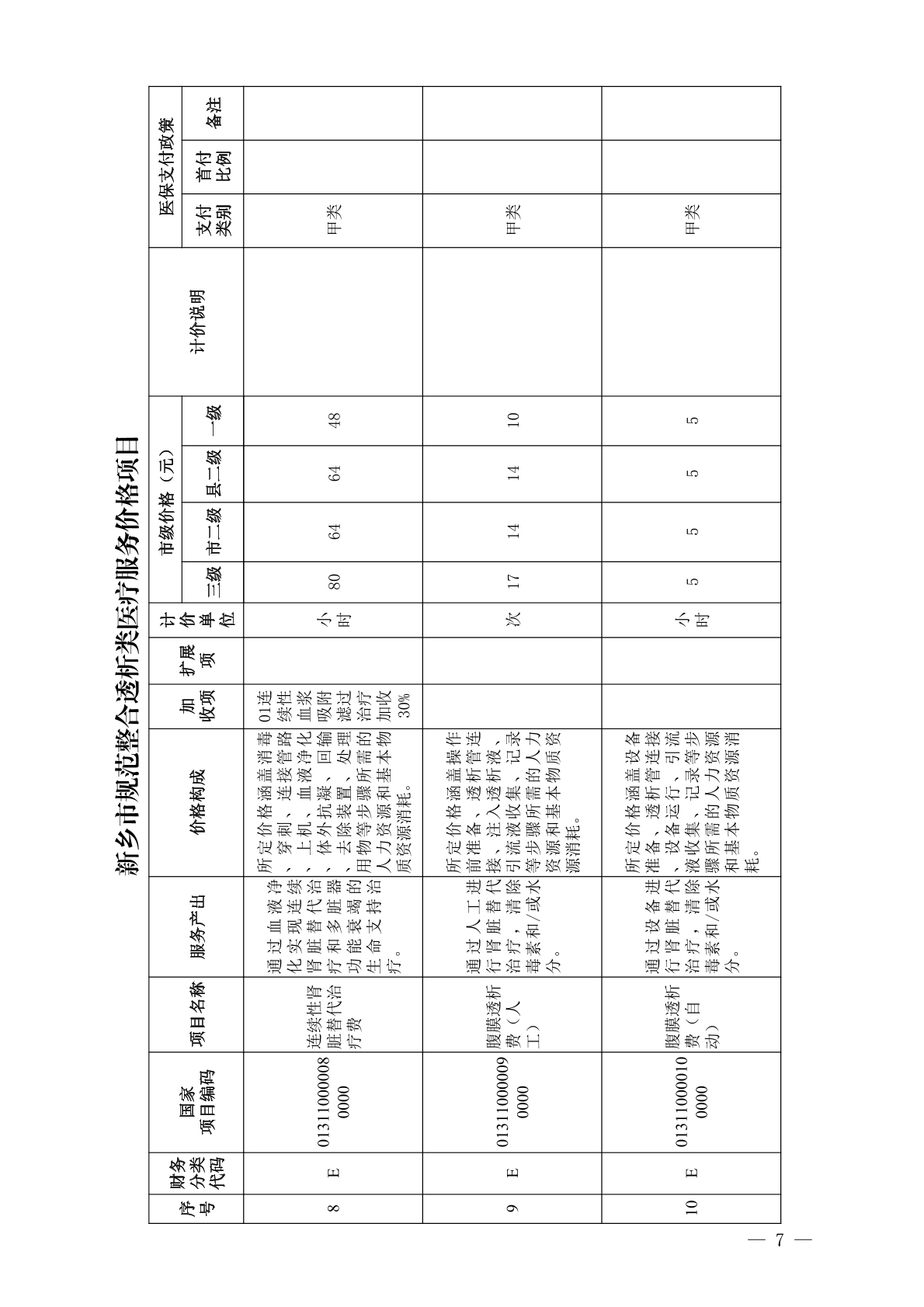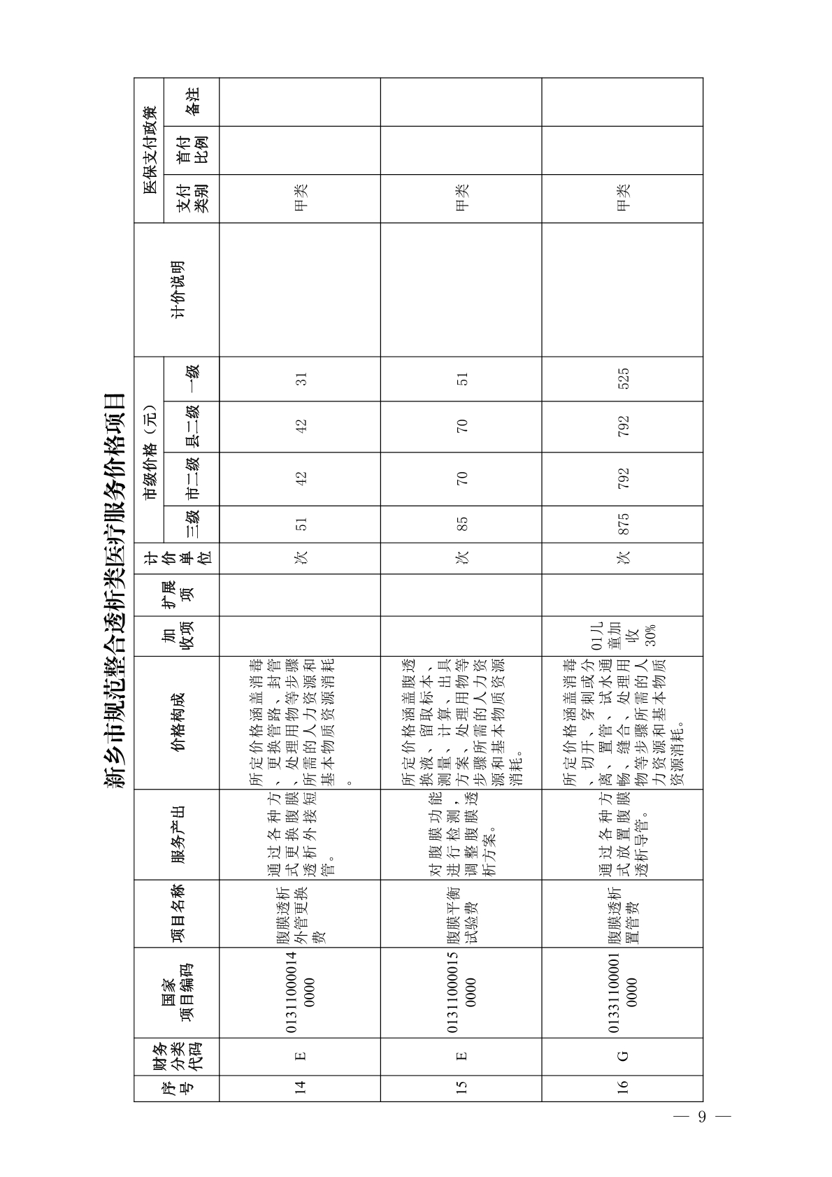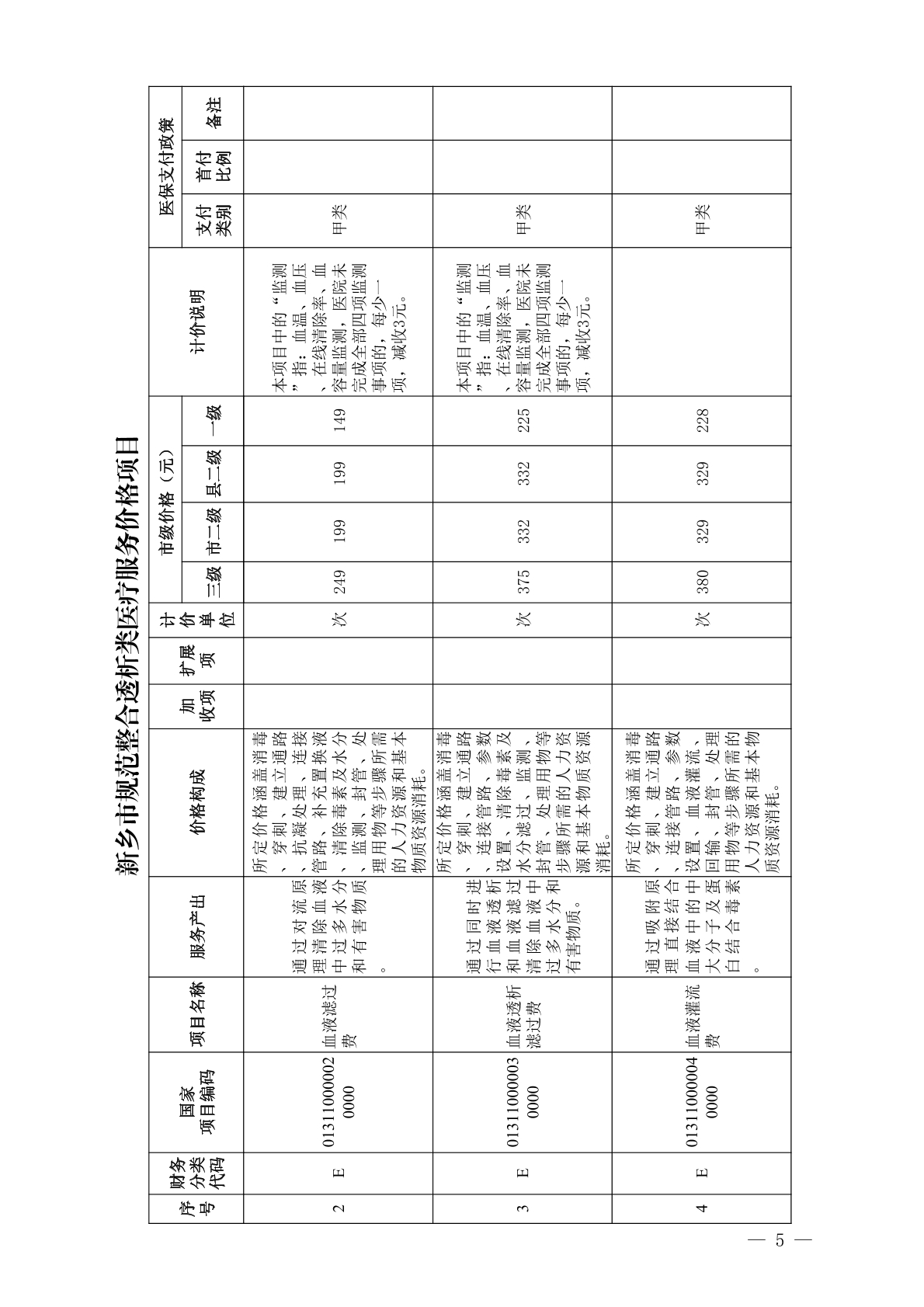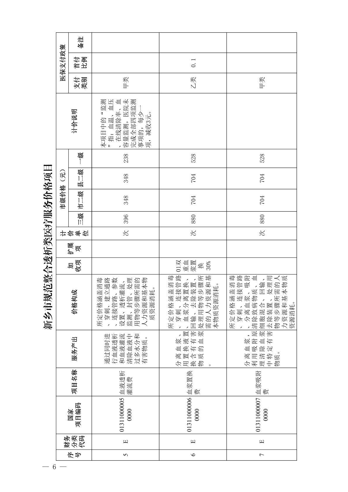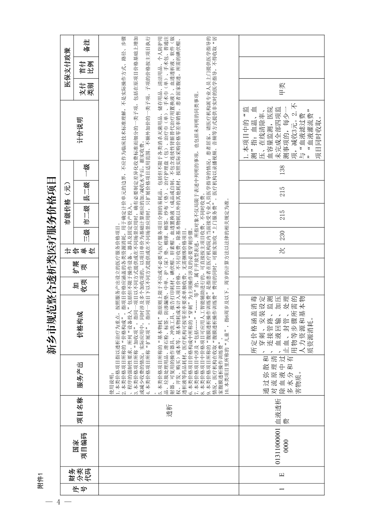 关于规范整合透析类医疗服务价格项目的通知