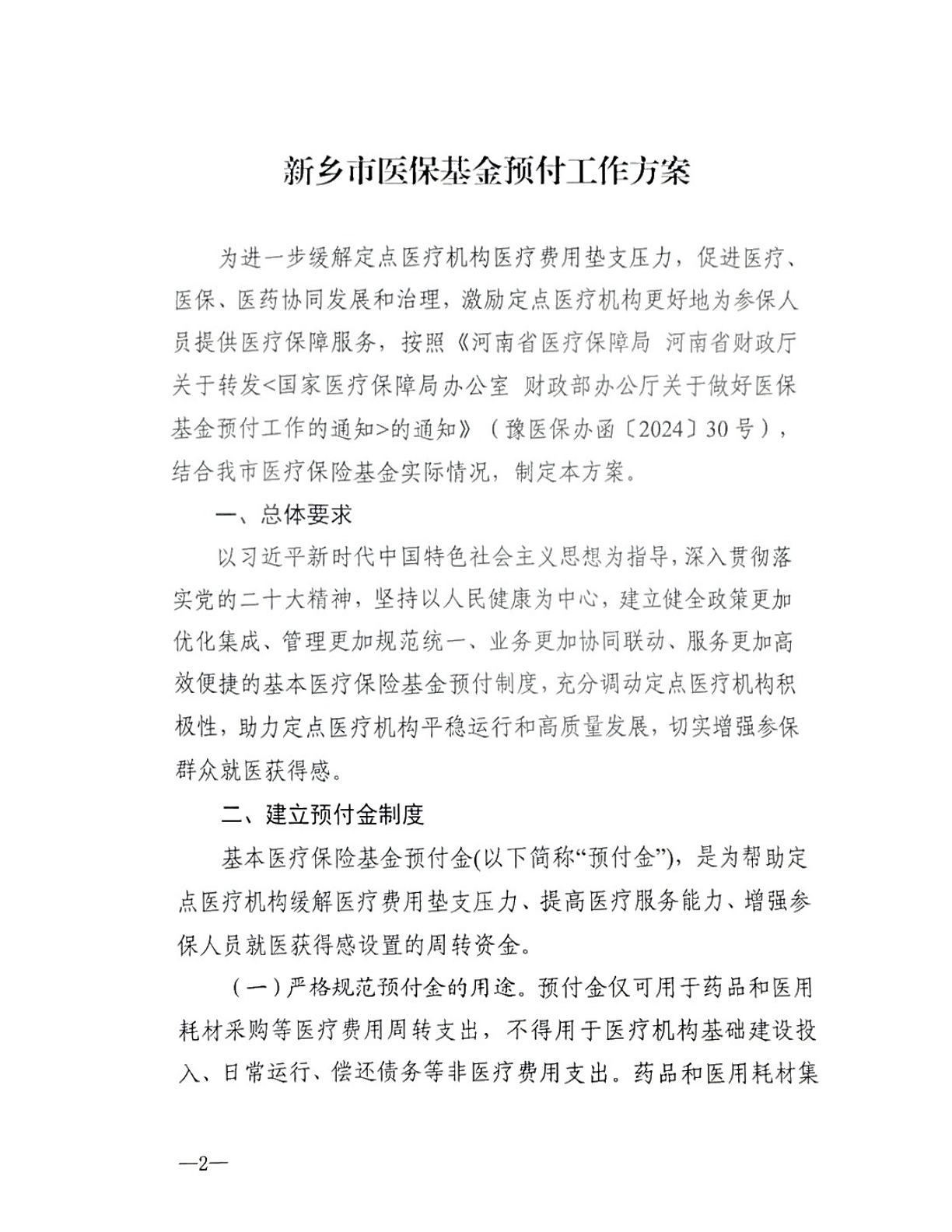 关于印发《新乡市医保基金预付工作方案》的通知